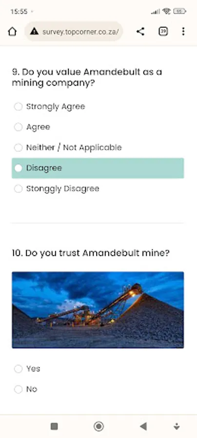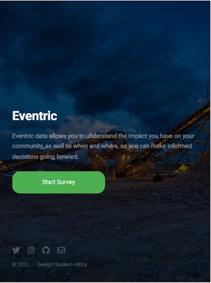 The app is used to conduct surveys around mining communities, to collect info regarding how the community is affected by the operations of the mine around them.