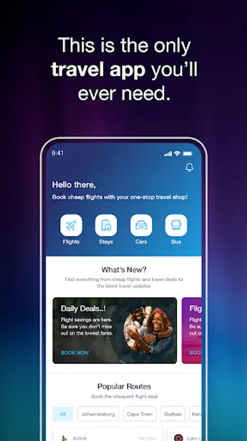 Download Africa’s #1 travel app and experience a world where travel will always be better, cheaper, faster and simpler. With Flights, Hotels, Cars and Buses and all-in-one place, you can enjoy the best travel bookings on the go.
