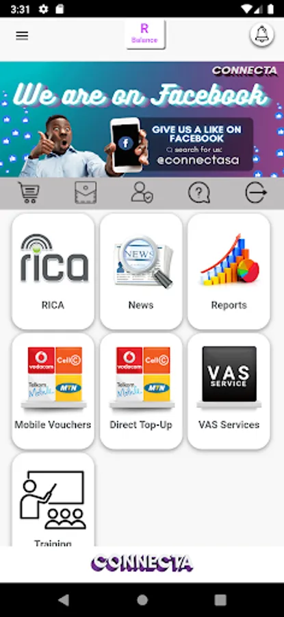 Smart, Fast & User-Friendly App allows traders and dealers the ability to register CONNECTA sim cards for RICA, Sell Airtime & view comprehensive reports on a monthly basis related to their CONNECTA customer account.
