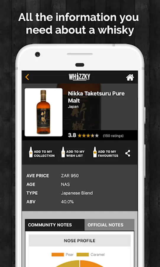 Belong to a whisky club? Use Whizzky to start one on your mobile! Invite your friends and collectively share and rate whiskies, save tasting notes and know that only club members have access.