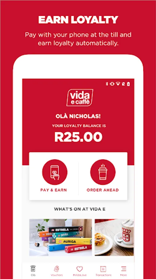 - You earn 5% from every purchase paid for with the vida app. This is added to your loyalty balance which can be used to pay in-store or to send vouchers to your friends.