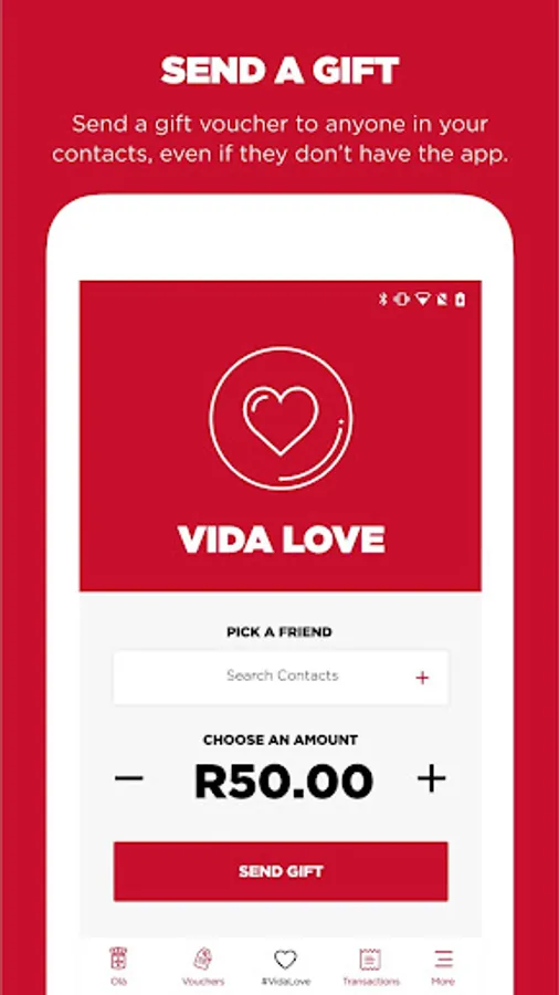 - vida fans can now share the love by making in-app purchases for vida vouchers to the value of R50 with R25 increments. These vouchers can easily be shared with friends who will then be able to redeem the full value of the voucher at their nearest participating vida store.