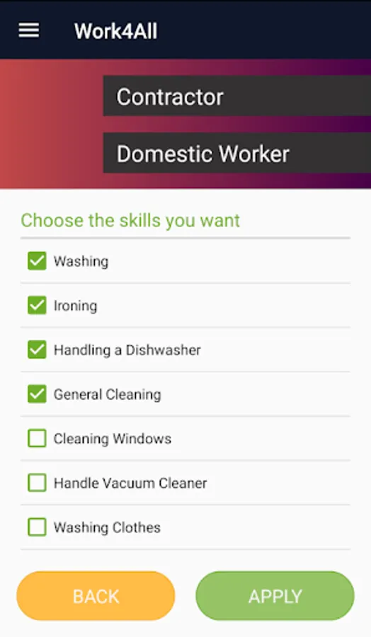 Work4All is an easy-to- use tool that allows users to search for workers and service providers in specific