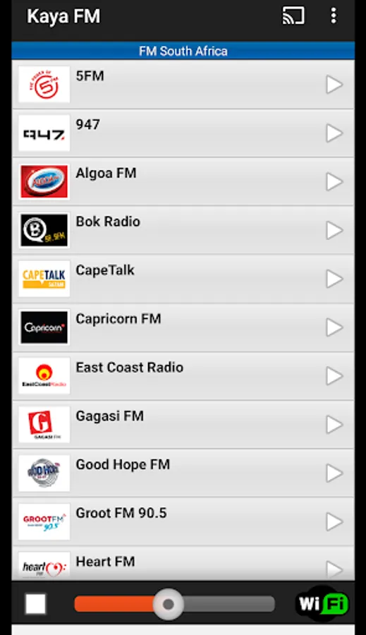 Listen to: Metro FM, 5FM, Radio 702, Jacaranda FM, RSG - Radio Sonder Grense, Kfm 94.5, 947, Ukhozi FM, LM Radio, Lesedi FM, Radio 2000, Motsweding FM, Kaya FM, East Coast Radio, Good Hope FM, Umhlobo Wenene FM, Phalaphala FM, Munghana Lonene FM, Algoa FM, Radio Pulpit, OFM, Heart FM, YFM 99.2, Gagasi FM, Impact Radio, Ikwekwezi FM, Vuma FM, Tuks FM, Overvaal Stereo, Bok Radio, Smile 90.4 FM, Groot FM 90.5, Capricorn FM, CapeTalk, HOT 91.9 FM