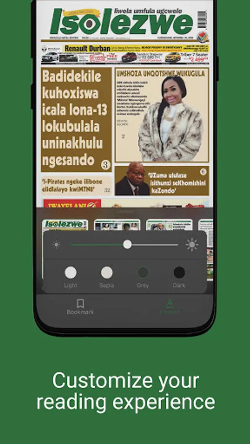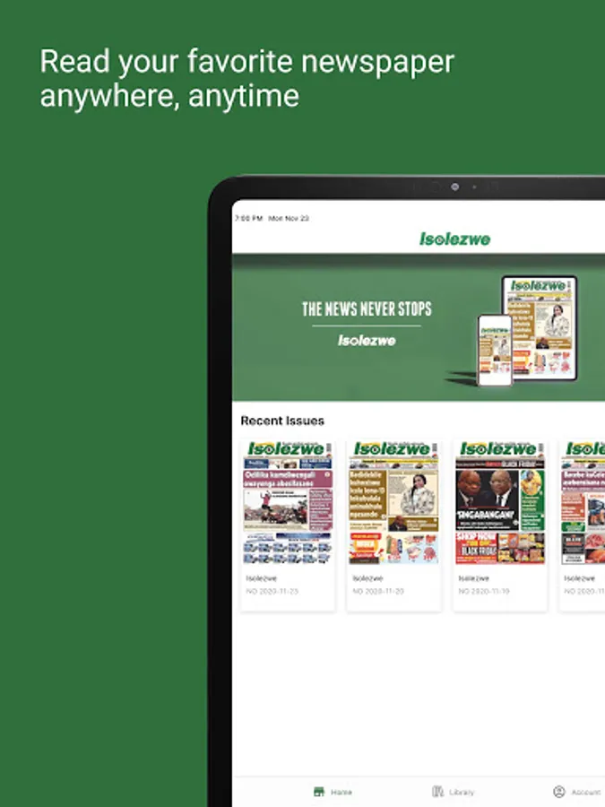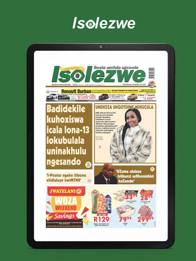 Isolezwe is a modern isiZulu language newspaper that champions the reading needs of its audience. It is created daily by a team that understands and delivers on the interest and aspirations of its readers. The newspaper is modern in format, topical and relevant in content and independently broad minded in its reporting and commentary. It is a newspaper that targets readers identify with and are proud of. The full spectrum of local, national and international subject matter is covered – news, business, sport, entertainment and classifieds.