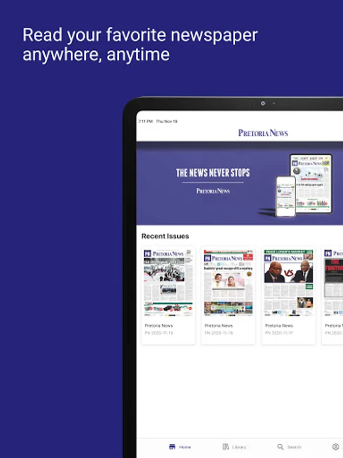 Pretoria News is a newspaper appearing in the city of Pretoria, in the Tshwane Metropolitan area, every day from Monday to Friday. The Pretoria News offers comprehensive coverage of local news, as well as national and international news, comment and analysis by experts, sport, entertainment and lifestyle. The daily Tonight supplement highlights what’s happening on the entertainment front. Other popular regular features include Consumer Watch, Metro Watch, Food for Thought, What’s On and a weekly Motoring supplement. Business Report, South Africa’s national financial daily, is an important addition for decision-makers. The Classifieds include the popular Workplace on Wednesdays, and the weekly Thursday Motoring supplement is not to be missed.