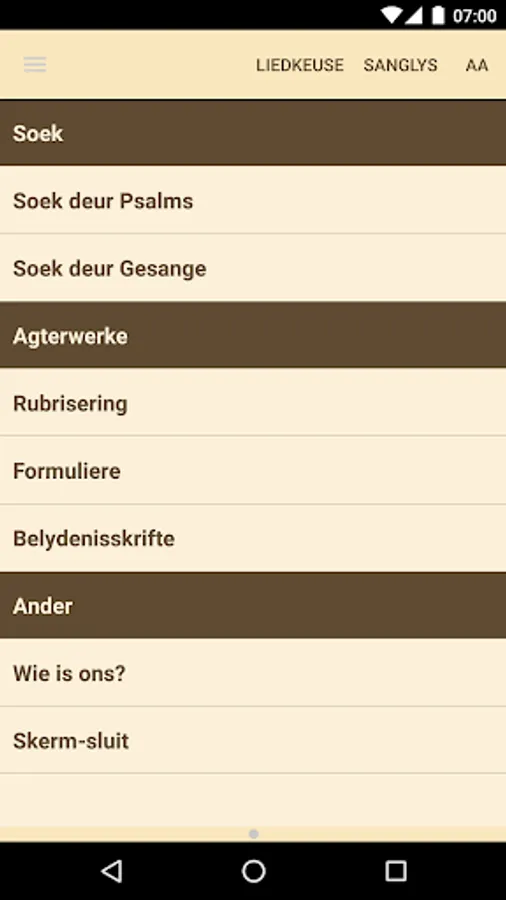 The APK Songbook contains the psalms and hymns which is used by the APK (Afrikaans Protestant Church) in South Africa. This app includes: