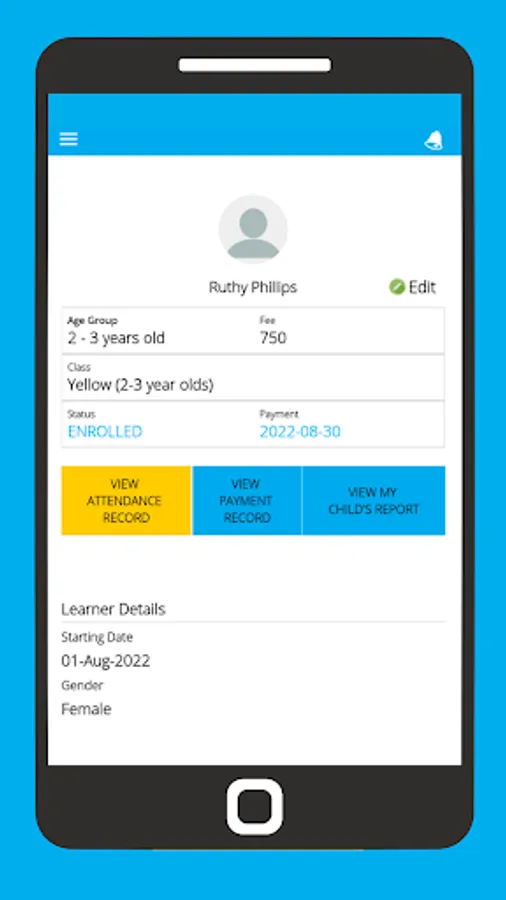 My Child: you are able to view your child's profile, payment record, attendance record as well as latest assessment results