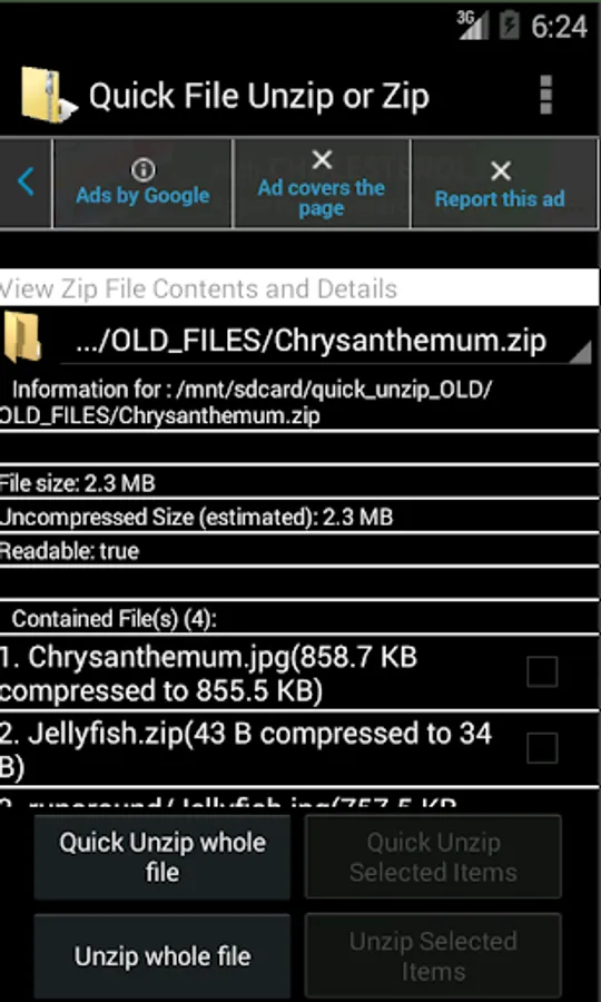 - Browse the files/folders stored on your device to select the zip file to be processed.