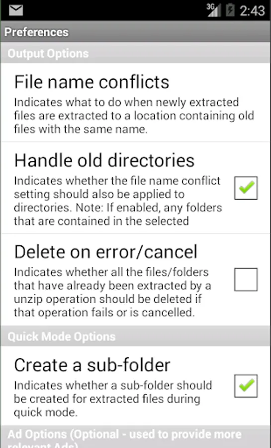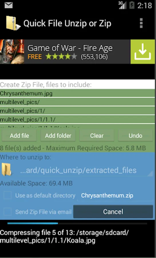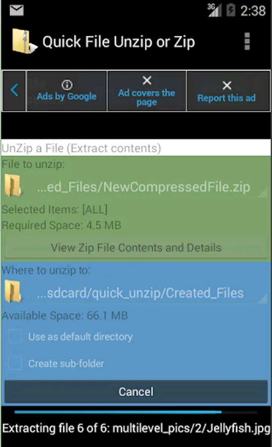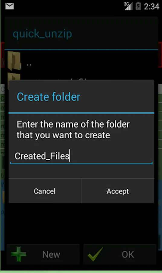 - Browse the folders on your device and/or create new folders to save extracted files and/or newly created zip files.