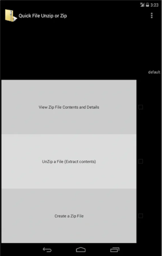 - Select your default zip function, so that it becomes your default screen. Expediting your common zip task.