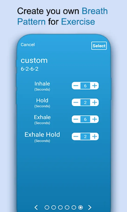 Custom Exercises: You can create custom exercises by selecting the Inhale time, Hold time and Exhale time.