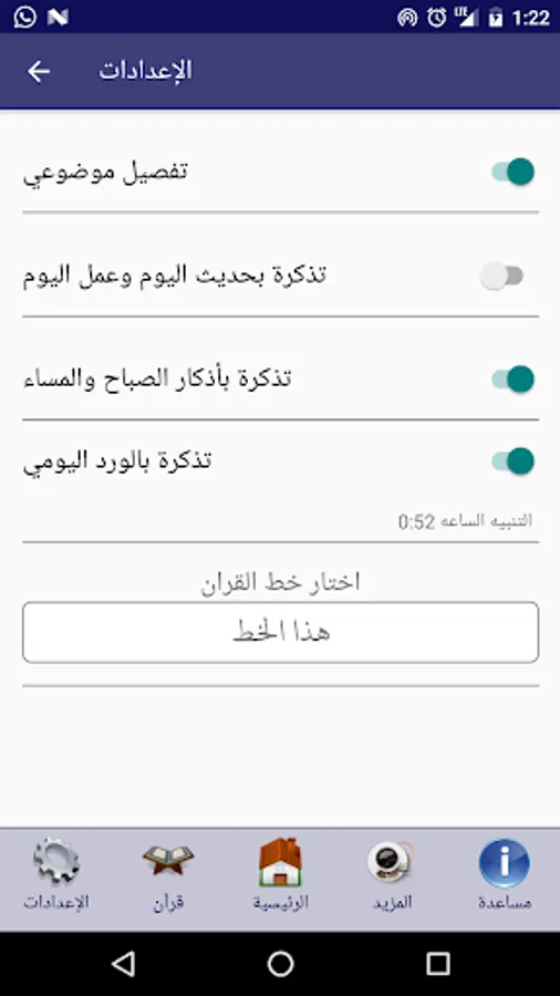 هذا البرنامج يساعدك على تدبر القران, بوجد الوان التفصيل الموضوعي للقران وايضا يساعدك علي حفظ اياتكك المفضله و التفسير الميسر وايضا يوحد خصية عرض الايات بالمواضيع ايضا يساعدك علي الذكر والدعاء