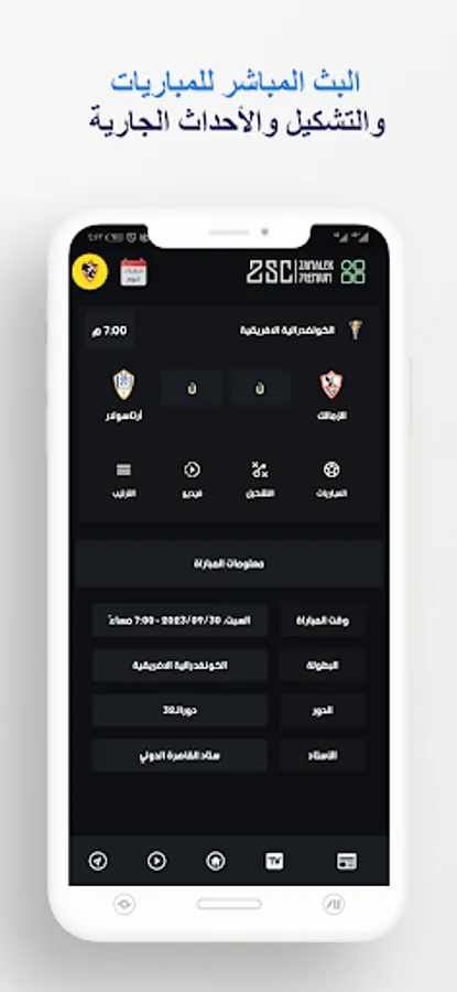 A sports application specialized in displaying the details of the Zamalek club and the latest news for all tournaments.