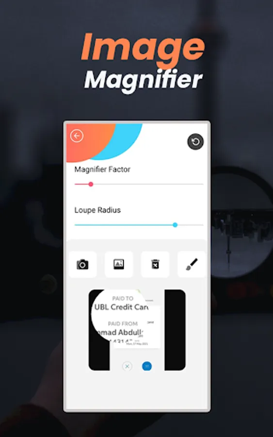 Magnifying glass is a free android application. Simplest tool that anyone can use it hassle free. The best app that help you magnify images or text with magnifier, you will read clearly and easily, and never missing anything. You can zoom by using seekbar with your fingers and also you can magnify images using tap to zoom feature of magnifier zoomer.