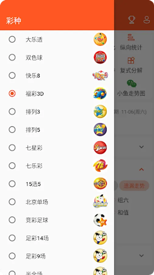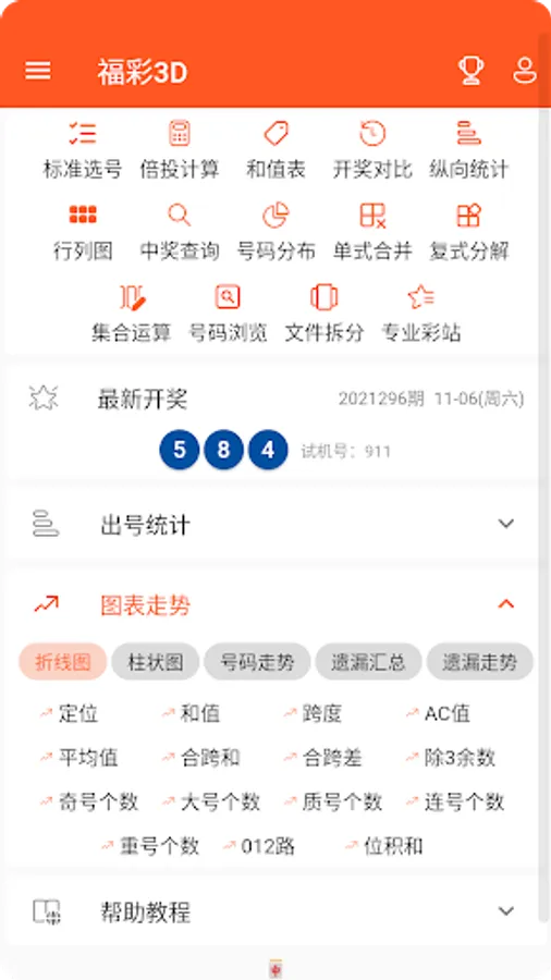 -Merging multiple tools, currently supports 14 football lotteries (winning or losing lottery), optional nine football lotteries, soccer lottery goal lottery, half-time soccer lottery, seven-star lottery, arrangement 5, arrangement 3 and several types of numbers are merged.