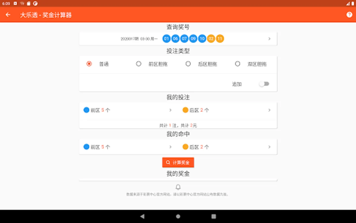 * Bonus calculation tool, support double color ball, big lottery, seven lottery.