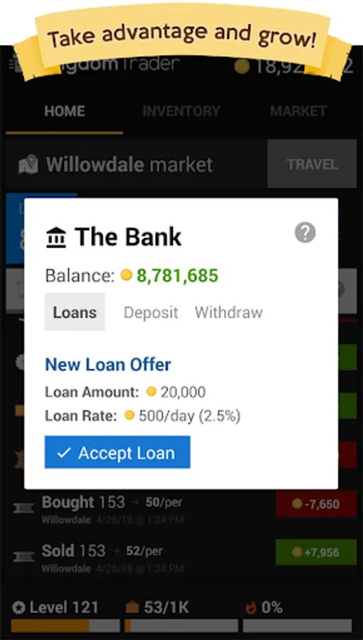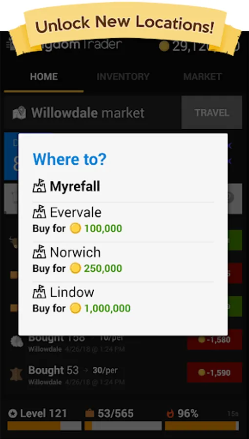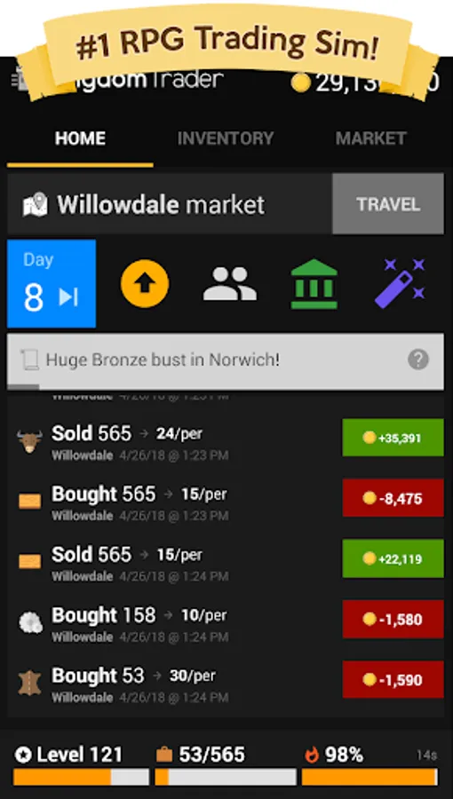Manage you trading operation and make tons of coins! Hire merchants to sell for you while you're gone, borrow from the banks, upgrade your way of getting around, upgrade how much stock rpg goods you can carry! Unlock medieval locations - some are poor, some are exceedingly wealthy and you need to take advantage!
