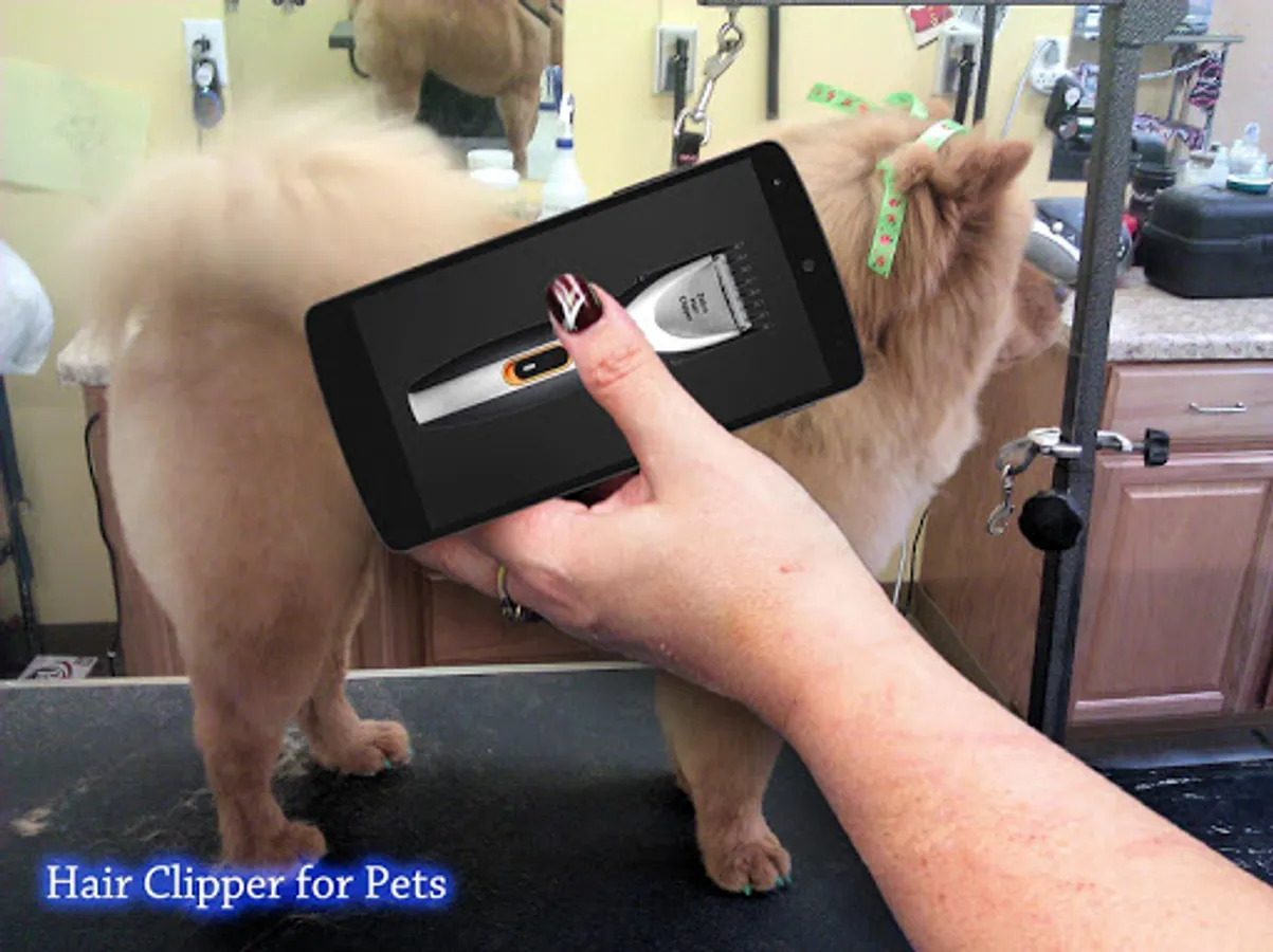 2. Move the phone screen close enough towards the head of your pet, kid or anyone you want to prank, then the hair cut sound will play automatically.
