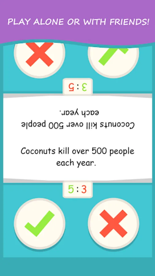 True or False? is a trivia quiz game, where you are faced with many fun and interesting facts. Your goal is to determine whether they are true or false!