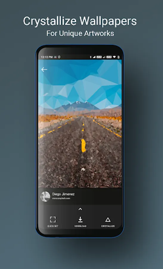 Crystallize Wallpapers – Convert any Wallpaper from within the app to a beautiful and exotic low poly Image. As a pro user, you also have the ability to save the Crystallized Wallpaper.