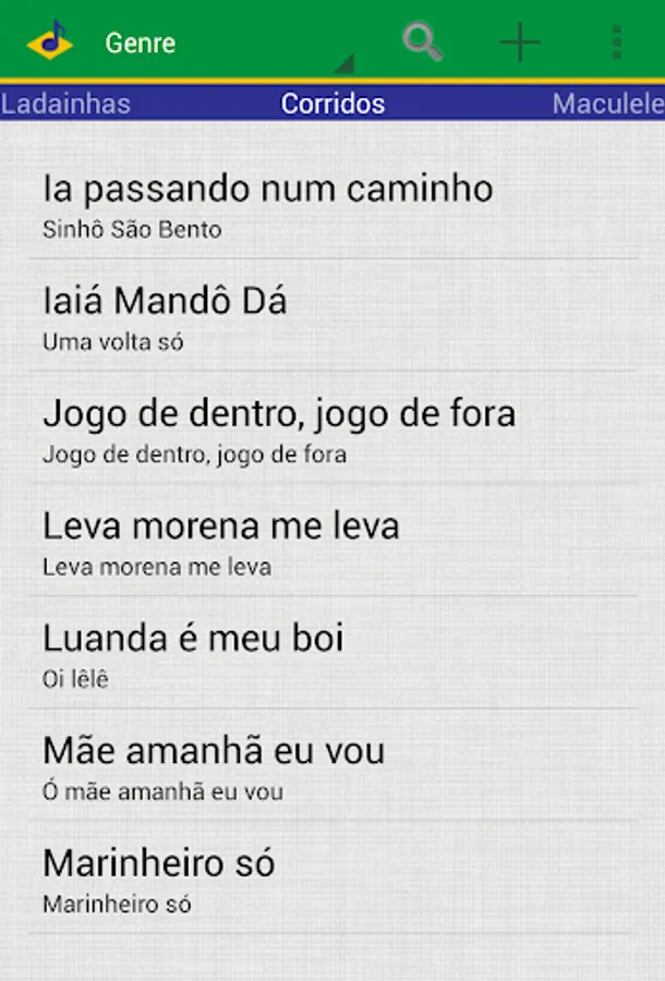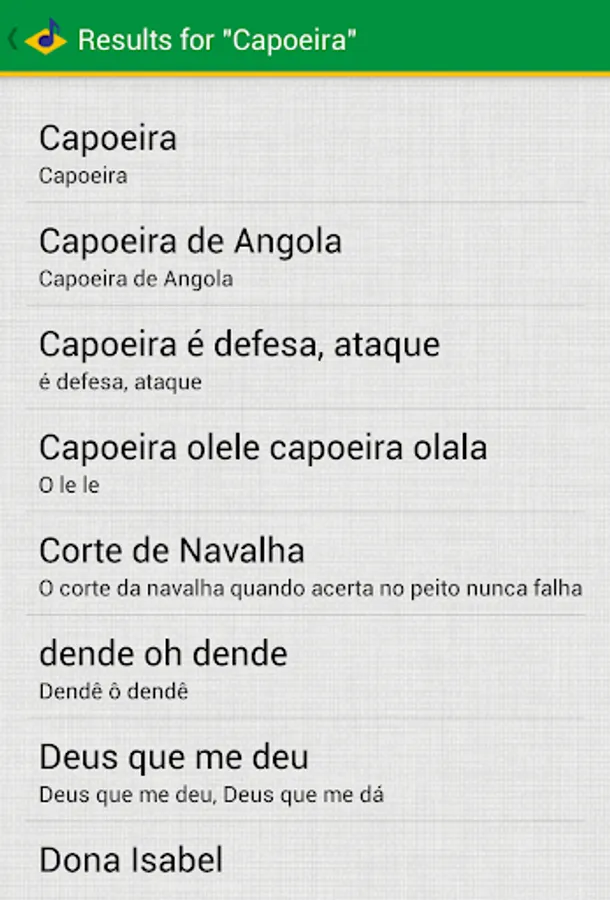 This app lists all of your capoeira beloved songs, and lets you watch each song's lyrics.