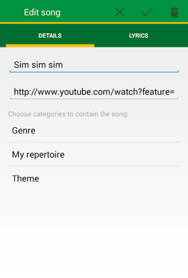 Enter your own songs, edit them, translate them, insert a link to youtube...