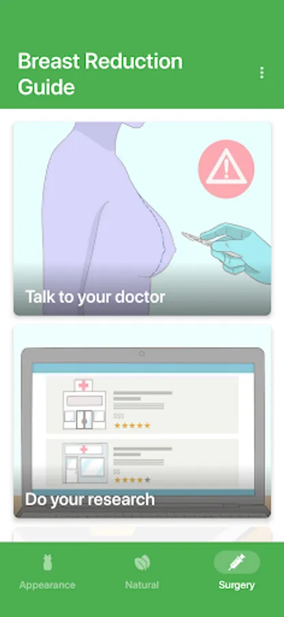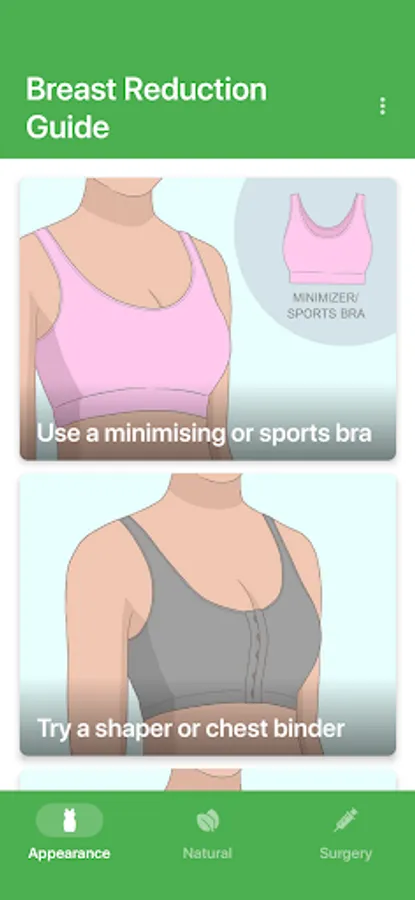 Breast Reduction Guide is an essential resource for those seeking relief from the pain and discomfort of large breasts. With detailed information on breast reduction surgery, non-surgical options, recovery tips, and lifestyle changes, this app provides a comprehensive roadmap to a lighter, more comfortable you.