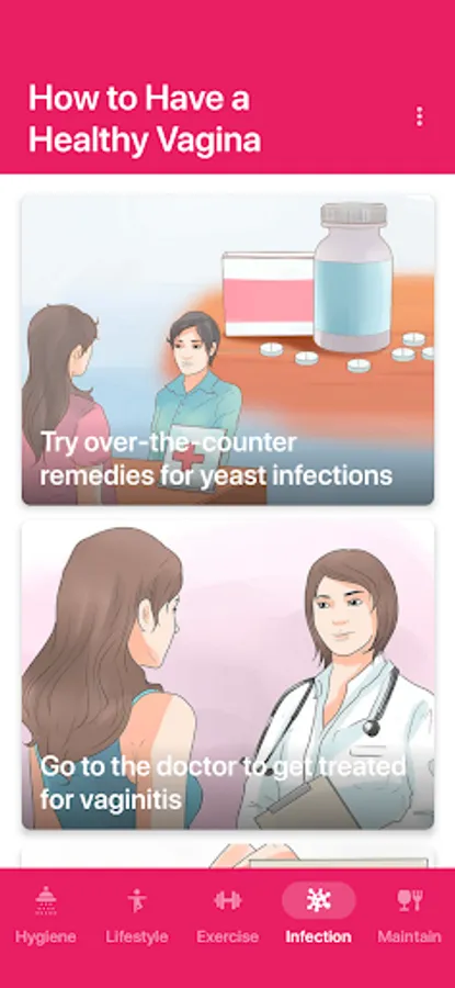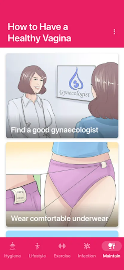 With our app, you can access expert advice and tips on hygiene, sexual health, and common vaginal issues and treatments. Our user-friendly interface and clear instructions make it easy to learn about topics such as menstrual cycle, vaginal discharge, UTIs, yeast infections, and more.