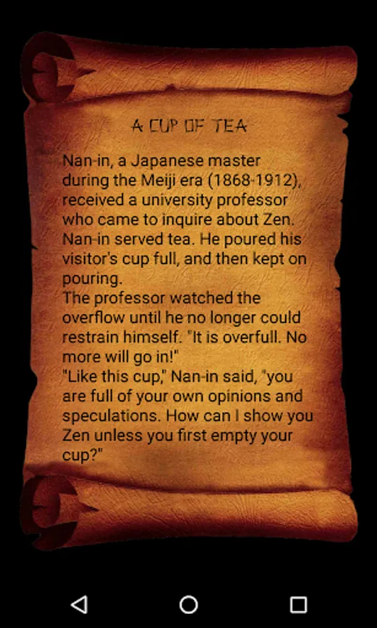 ‘Like this cup,' Nan-in said. ‘You are full of your own opinions and speculations. How can I show you Zen unless you