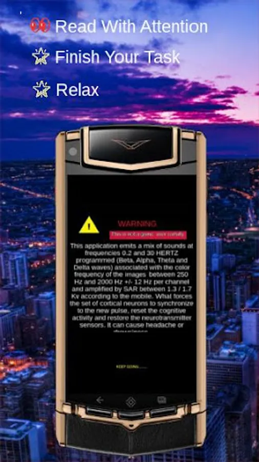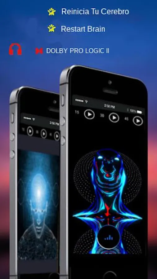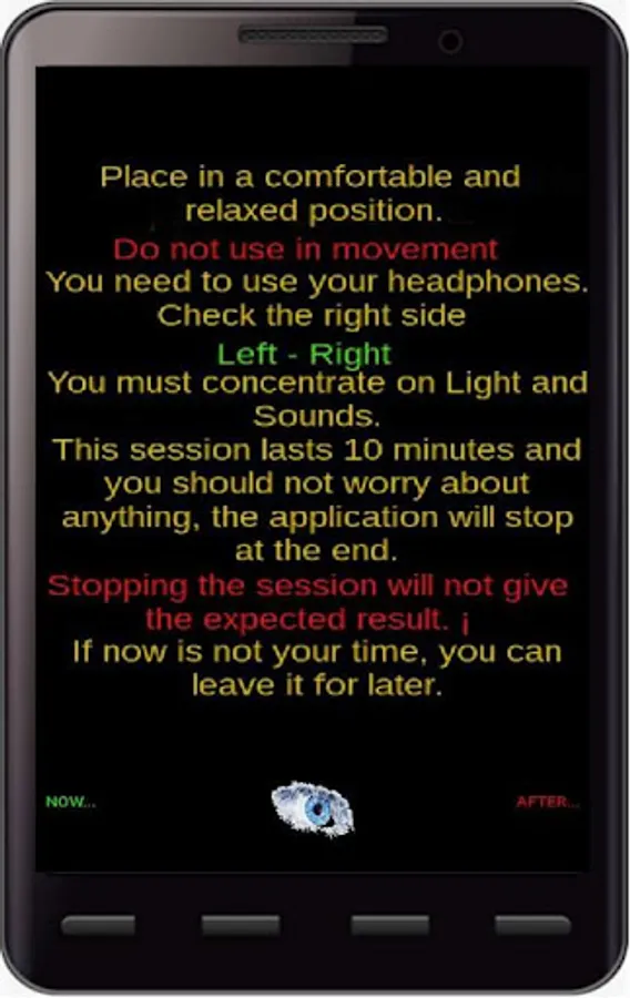 👏 Our app is different, you do not have to worry about anything, nor the frequencies nor the technical sections, since we have organized Binaural tones in a progressive way, according to their effects in the human brain, further enhanced with color therapy and asynchronous background sounds in ◗◖ Dolby Pro Logic II, which cover the beats, but the brain continues to perceive them, which makes it less monotonous and relaxing