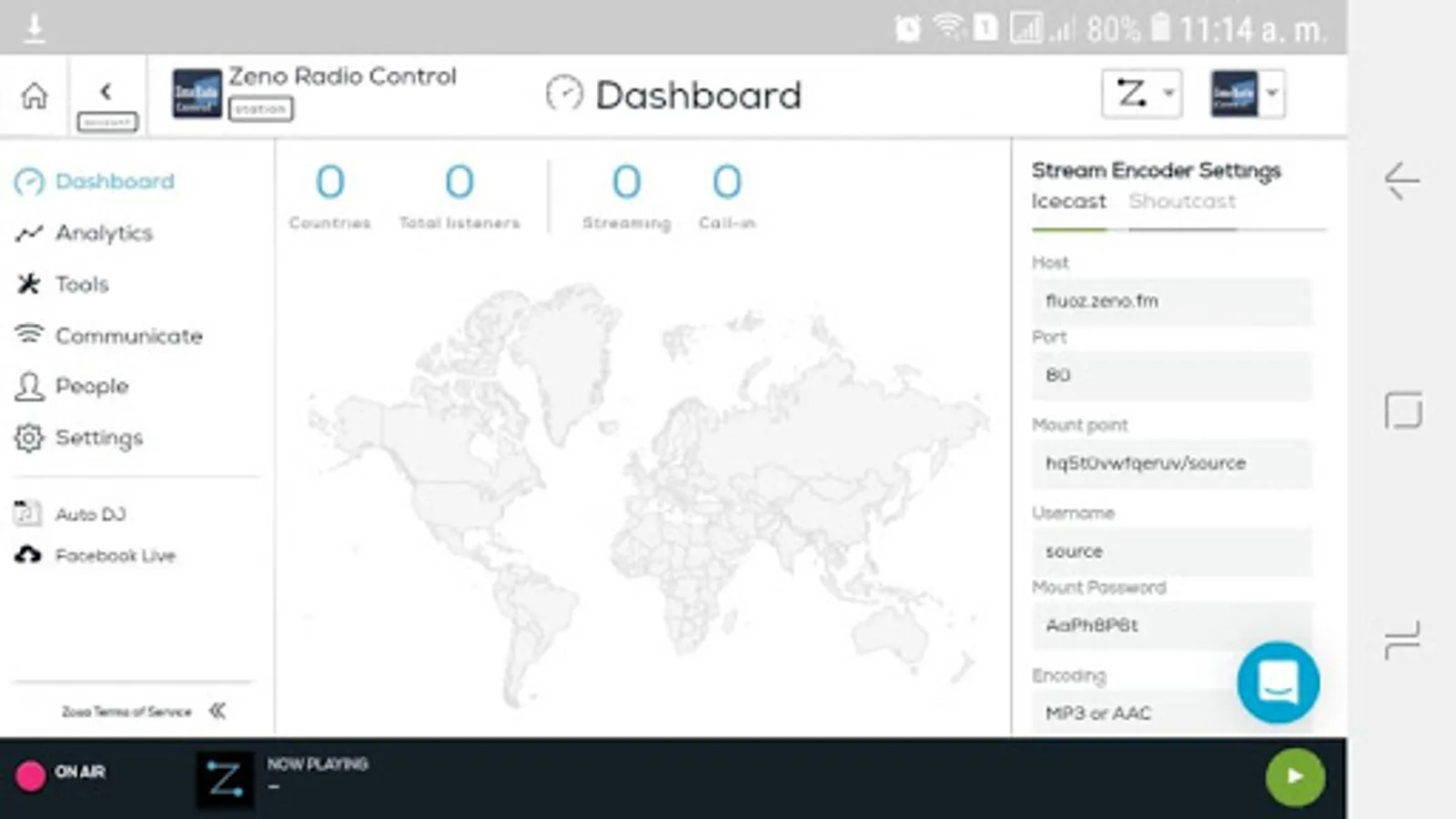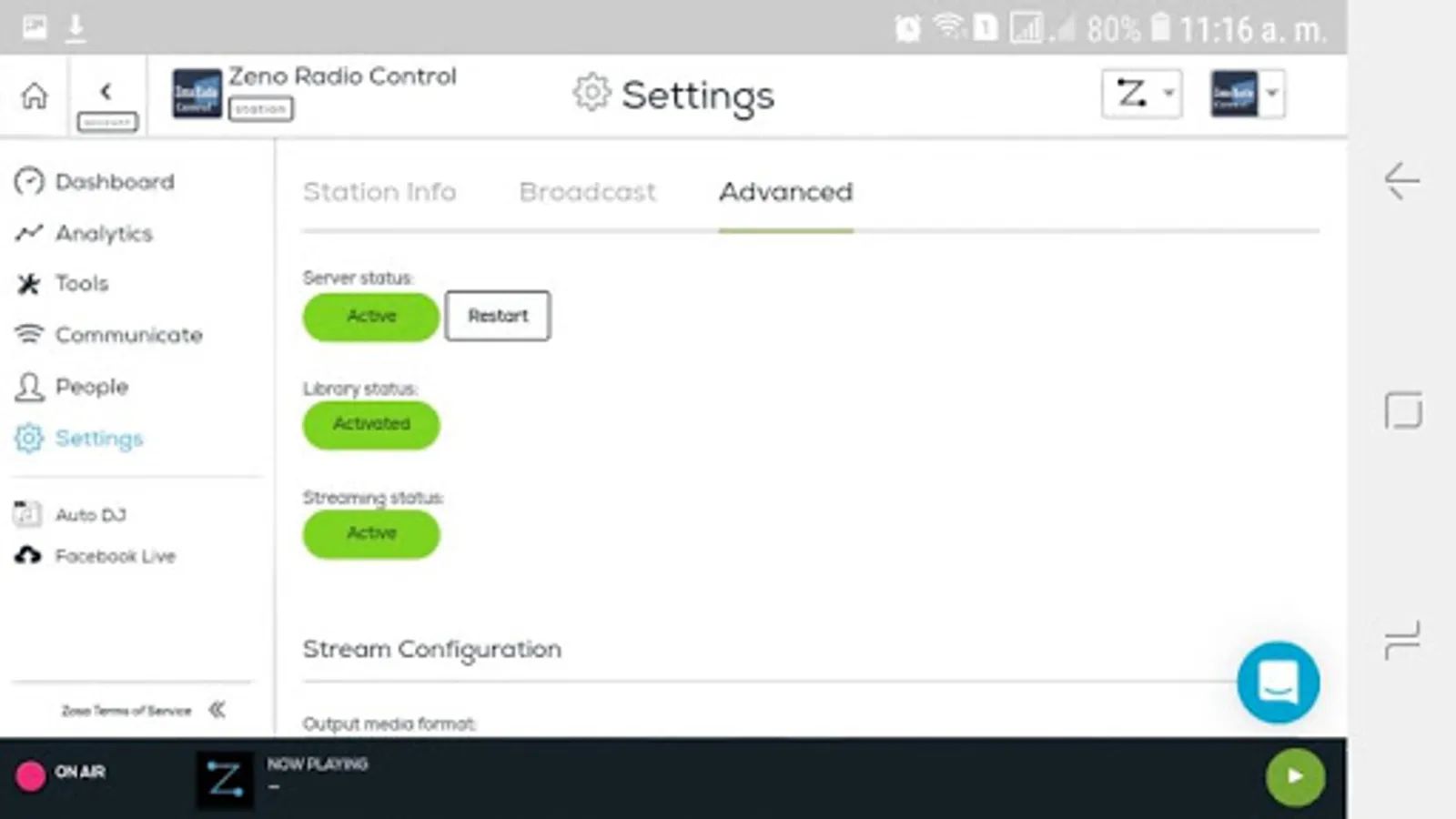 From this app you can fully control the zenomedia control panel see connected upload music configure your radio among other things everything you do from your pc you can do it from the app