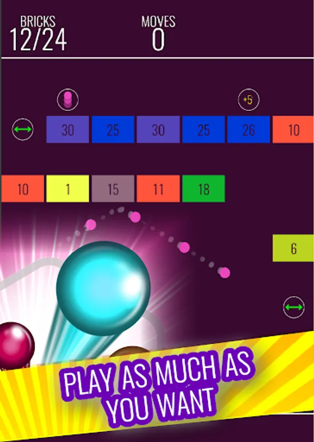 Try to break as many bricks as possible before moves ends..