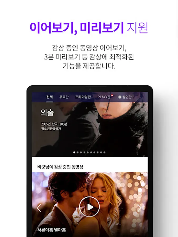 • Premium pass supports unlimited viewing of premium theaters, removal of advertisements, support for high-definition video, and simultaneous access