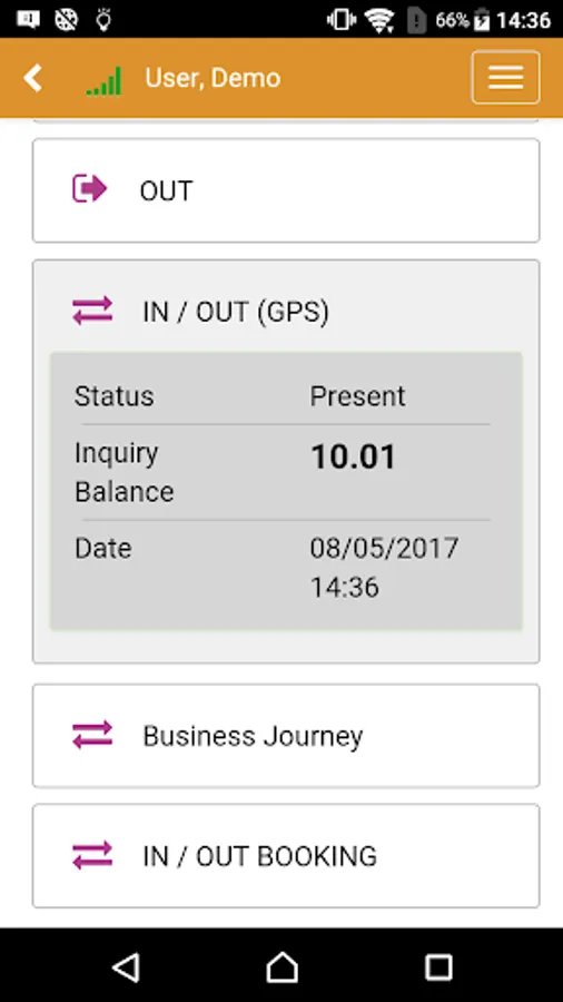 In the event of an emergency (e. g. fire), the Evacuation report provides an overview of all employees informing on who is still inside the building and who is already safe.