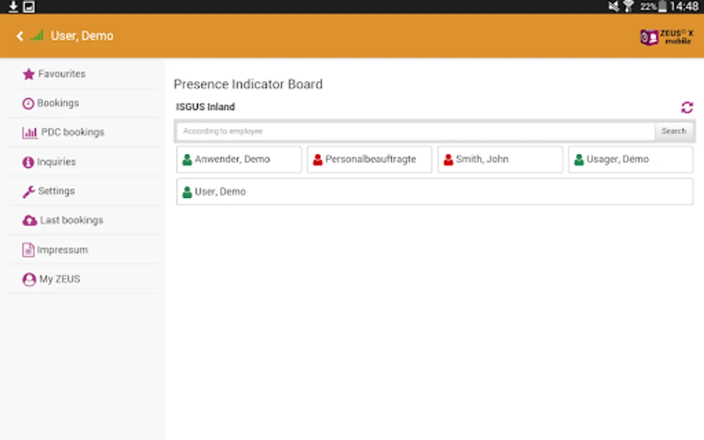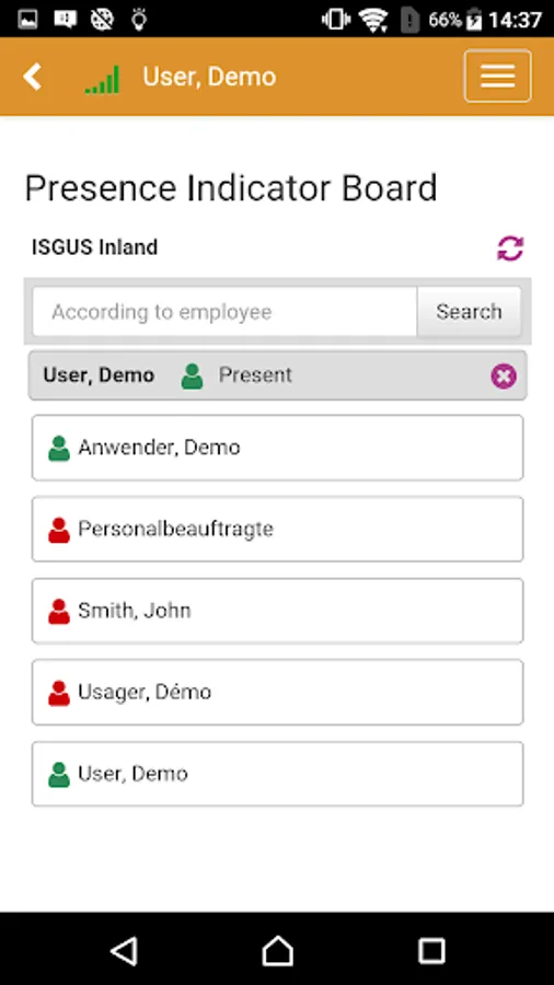 The mobile Presence Indicator Board informs about the current presence/absence status of co-workers belonging to predefined teams and organisation units.