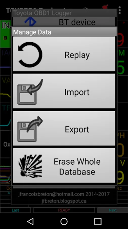 -Allow to save every frame received in a database in the phone and export to *.CSV file as needed.