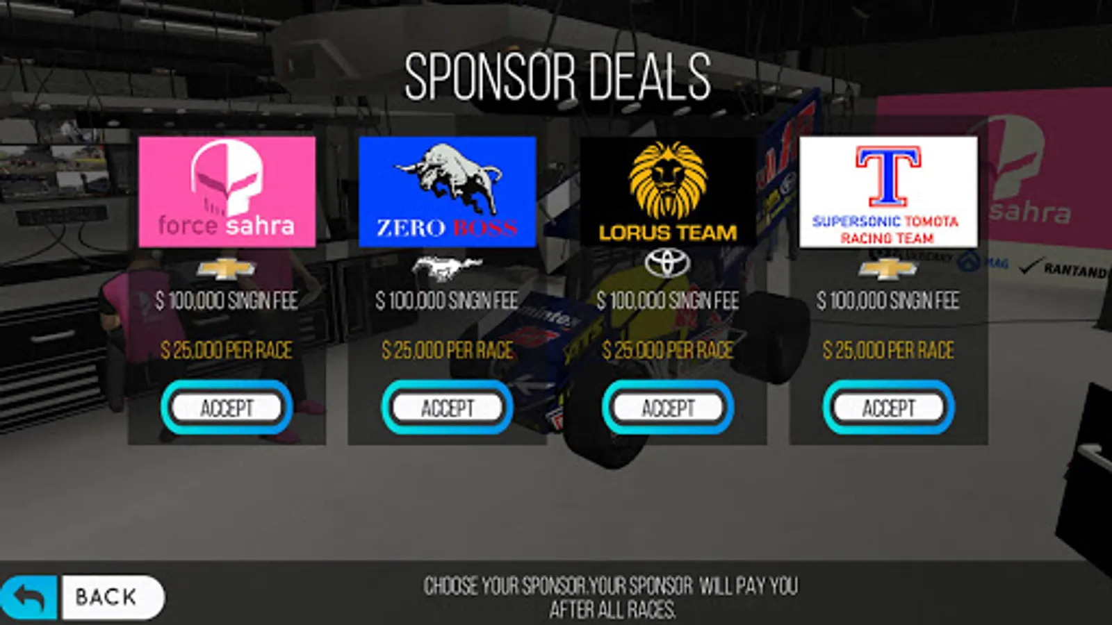 - Can control the all racing team features like Sponsor, Payments, Staff, Mechanics.