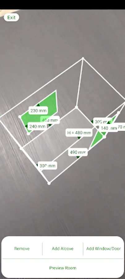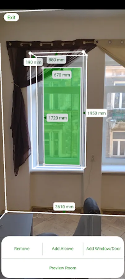 This application is designed to quickly measure a room using Augmented Reality (AR). It is possible to measure the entire room as well as alcoves, windows and doors.