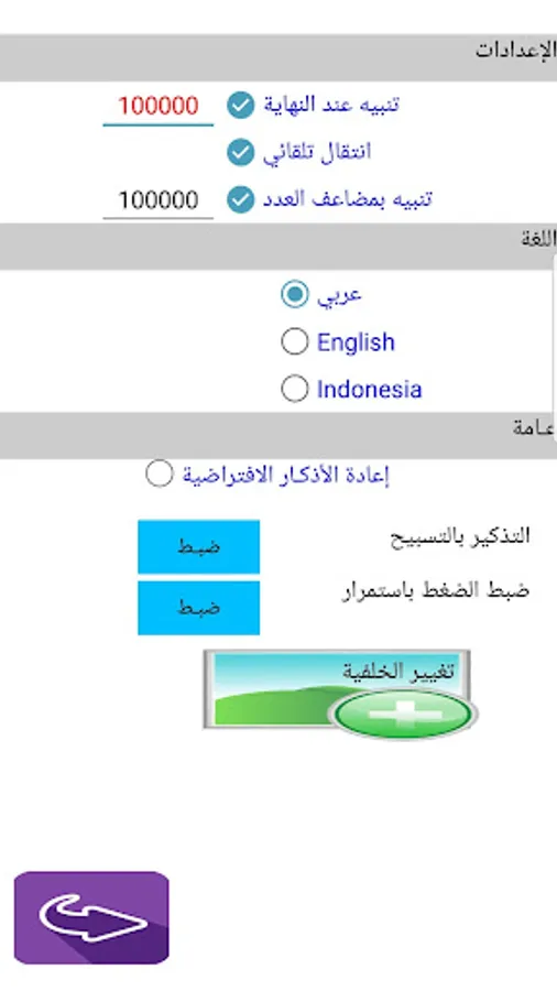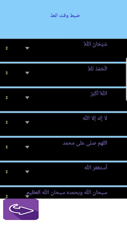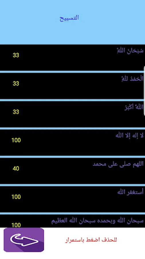 ميزة العد المستمر بدون النقر باستمرار على الشاشة وامكانية تحديد زمن لكل ذكر