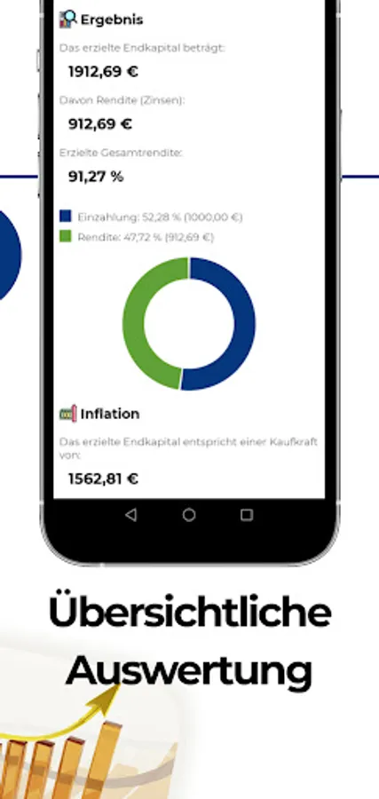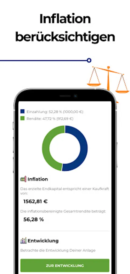 💰 & nbsp; Calculate how much initial capital you need and how much you would have to invest once in order to achieve the desired final capital after an adjustable term of X years. Again, optionally with or without compound interest. Inflation is also calculated on request.