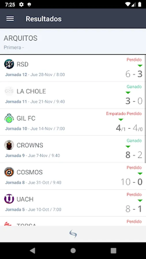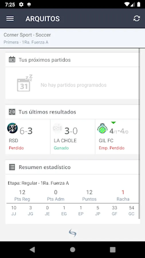 Corner Sport App Mobile keeps you informed of all the statistics of your teams: