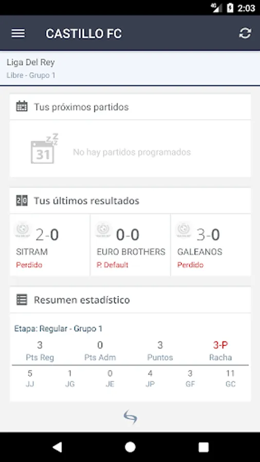 With the Liga del Rey App for Android you can see the information and activity of your team updated with the match schedules, statistics and notifications of the league. You can also check the individual score, activities and calls.