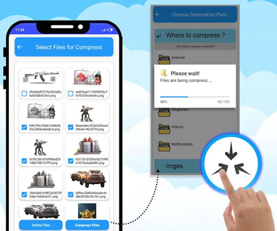 File compressor: our app is a best file compressor to compress any type of file like you can say compress pdf file or compress mov file or any audio video file in your mobile in just few seconds it’s not an online file compressor it’s an offline file compressor that compress zip file freely.