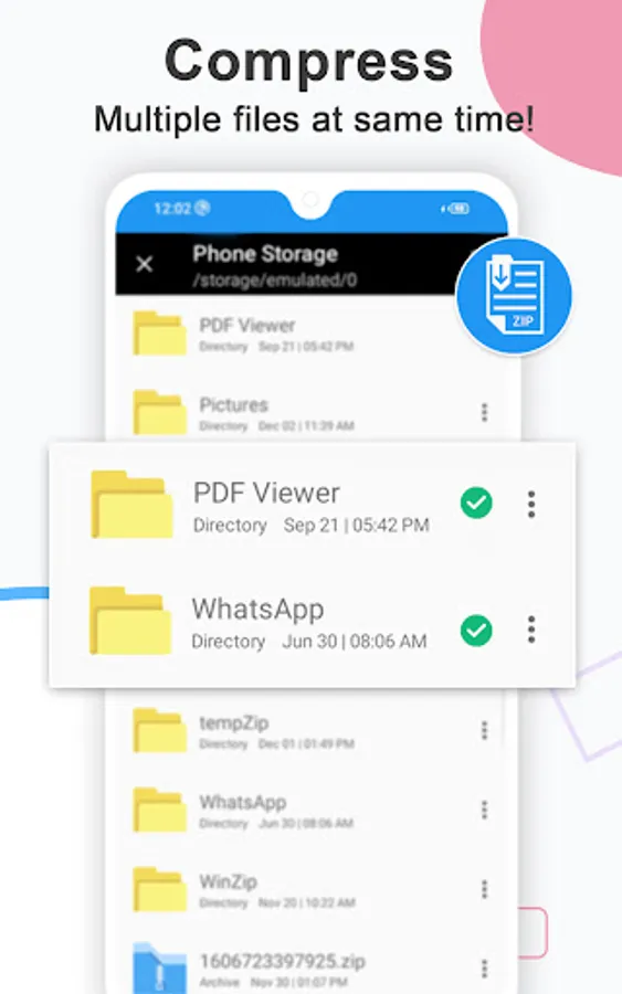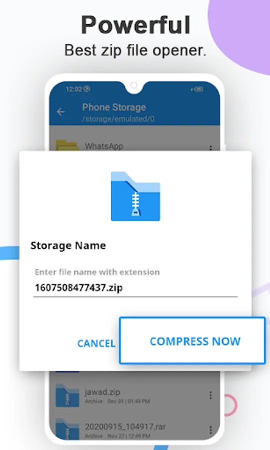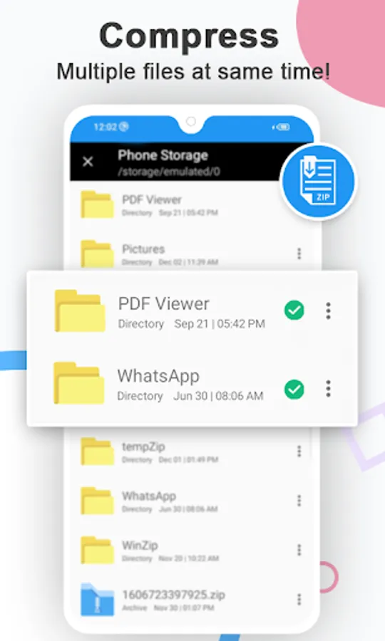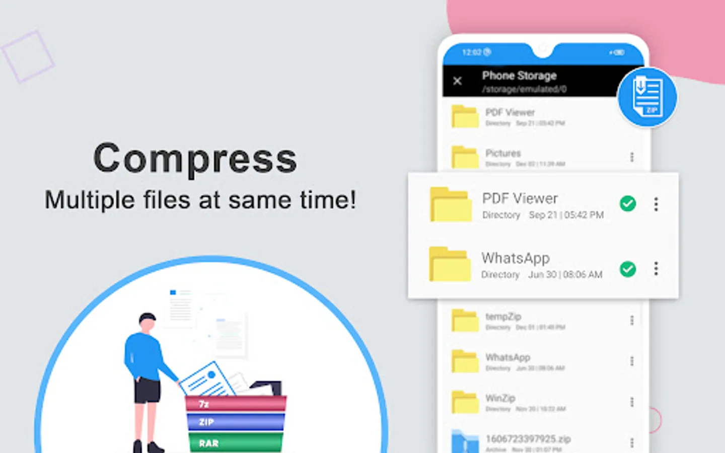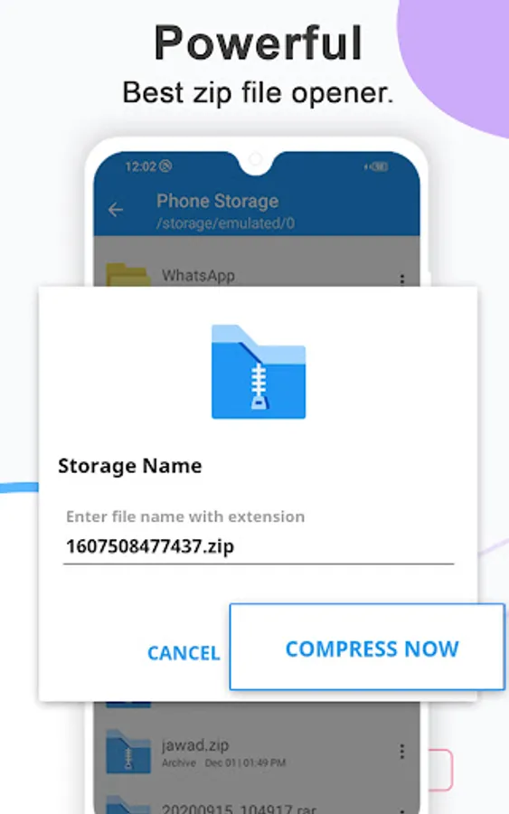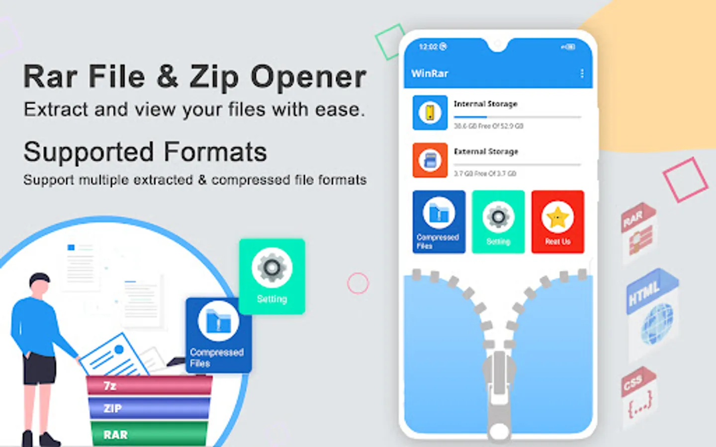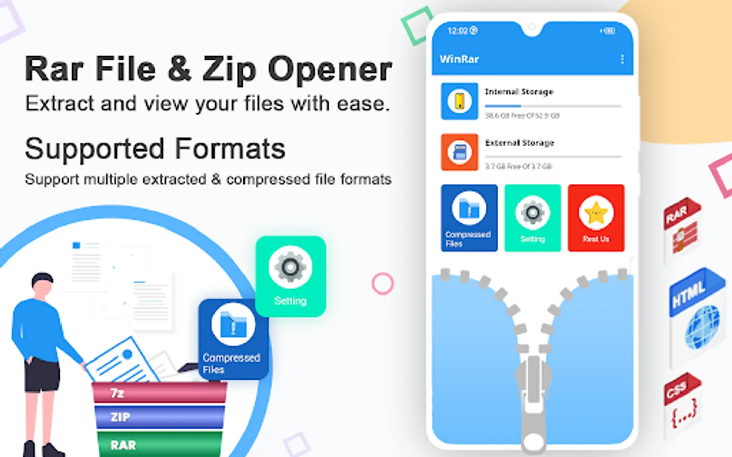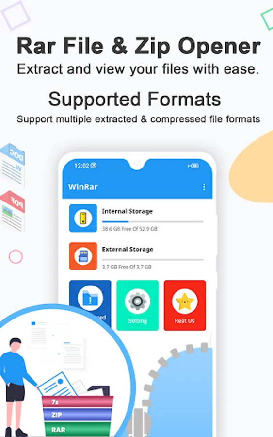 Zip-Unzip,File Extractor-File Opener is a Zip file opener & Compressor Application. Reduce your all kind of Files Size Like Doc,Images, and extract all your Zipped files & Compress them. Zip-Unzip-File Extractor-File Opener allows you to protect your files before with best encryption.You can Browse your Album and select multiple zip and share photo collections. You can compress files and shrink them easily.Unzip and view your files. You can Zip Photos & Videos from your device and share them Easily.