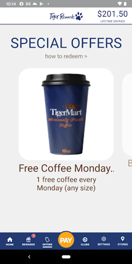 The Tiger Rewards program is a free rewards program that helps you save money on fuel and convenience store items across all Tiger Mart stations. Tiger Rewards receive surprises, a clubs program, and offers that match your preferences. You can earn additional fuel savings when you register for Tiger Debit and also pay with your phone at the gas pump or inside.