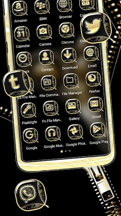 Install the themes which are cool.Your phone will be adorned with the Zipper wallpaper and turned so stylish. Well-designed icons will make your phone different from others.