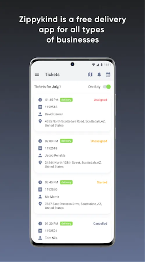 Zippykind is the easiest way for drivers to manage their deliveries and get to where they need to be. Sort your delivery tickets based on time of delivery or by route. Add notes, photos and digital signatures to delivery tickets to build a good chain of custody throughout the delivery process. Drivers can update dispatch operators and customers through autonomous SMS text messaging and email notifications during each step in the delivery process, including but not limited to: driver accepted ticket, driver started, driver arrived, driver completed delivery and driver failed delivery.