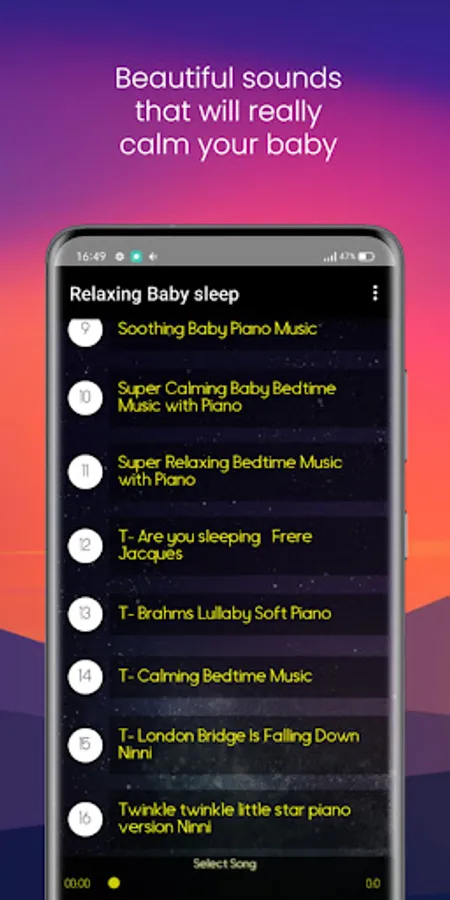 Want to make your baby a good night's sleep? Here is an excellent option to put your child to sleep. This App will help him sleep better because it has several soothing sounds of Piano without internet connection.
