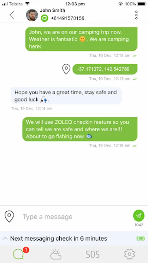 The ZOLEO app is the key to all the awesome global messaging and safety features that the ZOLEO satellite communicator offers. Simply connect to your ZOLEO satellite communicator using the ZOLEO app to enjoy messaging coverage absolutely everywhere. The ZOLEO app also unlocks additional features, such as progressive SOS alerting, check-in, location sharing and access to hyper-local weather forecasts. It also includes a dedicated number and email address to make it easy for key contacts to reach you. ZOLEO offers two-way messaging that seamlessly moves between cellular and satellite.